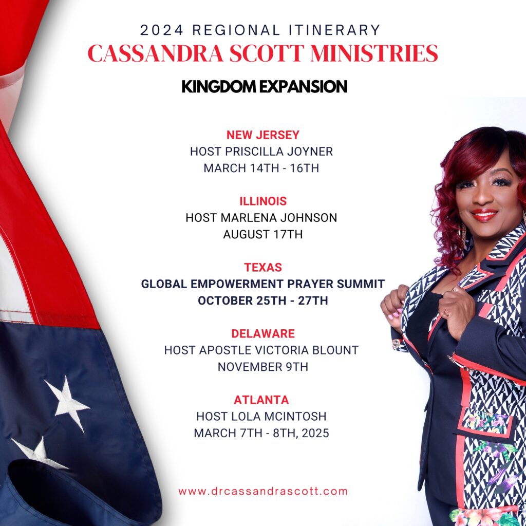 “It has been a blessing to travel with Cassandra Scott Ministries to: Prayer Regional Summits; Circling The City; 24 Hour Prayer Watch on the line; Prayer Walks; City Hall; Debt Cancellation Services; and other events, including when Pastor C received her Doctorate back in 2010! I have made divine connections in ministry that afforded me the opportunity to minister the Word in several different states, and in the ministry of dance – all from being connected to the “cluster.”